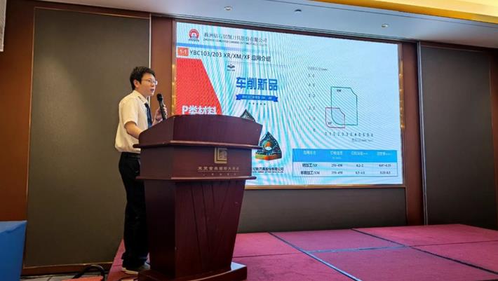 會(huì)議由廣東區(qū)域技術(shù)經(jīng)理陳帥主持,廣東區(qū)域區(qū)域經(jīng)理 葉宏致歡迎辭,他代表公司對(duì)參加會(huì)議的客戶朋友表示了感 謝。隨后,核心產(chǎn)品線市場(chǎng)部部長(zhǎng)尹兵介紹了公司的發(fā)展歷 程,規(guī)模產(chǎn)品線市場(chǎng)部市場(chǎng)經(jīng)理唐親君分享了整體硬質(zhì)合金 刀具的新品與成功案例,規(guī)模產(chǎn)品線市場(chǎng)部部長(zhǎng)張海對(duì)整體 刀具新品介紹進(jìn)行了進(jìn)一步講解,并對(duì)產(chǎn)品線的市場(chǎng)策略進(jìn) 行了詳細(xì)的宣講。核心產(chǎn)品線市場(chǎng)部市場(chǎng)經(jīng)理趙勛介紹了數(shù) 控車削、銑削刀片及淺孔鉆等新品,并分享了成功案例。最