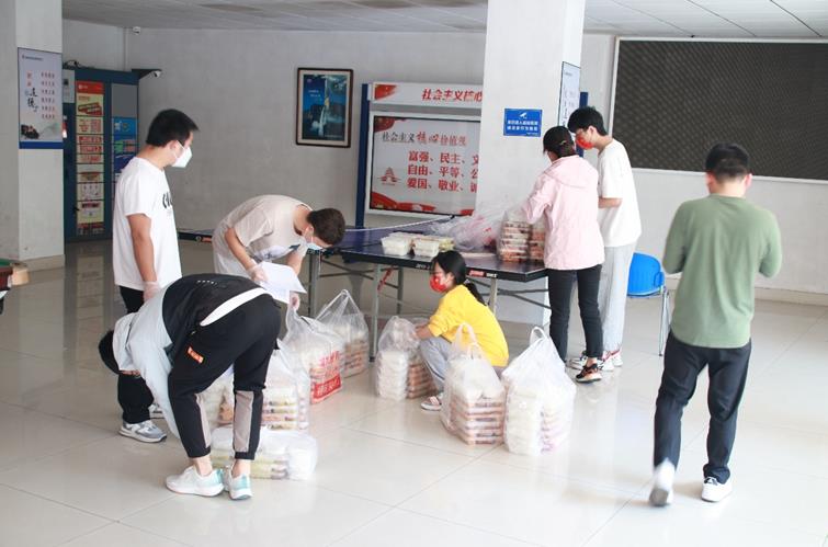 后勤保障組主要負(fù)責(zé)全體人員的餐飲無接觸配送、采購物資的分發(fā)等。每日訂餐結(jié)束后,志愿者從后臺導(dǎo)出訂餐人員信息,整理出每樓層的總訂餐數(shù)、房間號及份數(shù)清單,為餐食的分發(fā)提前做好準(zhǔn)備。志愿者取餐后按清單快速分揀各樓層所需餐食,各樓層餐食分配完成后,統(tǒng)一通知開門取餐,極大的減少了員工之間的接觸,大幅提高了配餐的效率,確保員工可以吃上熱乎的午餐和晚餐。目前每日送餐量接近400份,單樓層最大配送量超過80份,經(jīng)過配送流程優(yōu)化后,每層在5-8min即可完成無接觸送餐,效率大大提高。