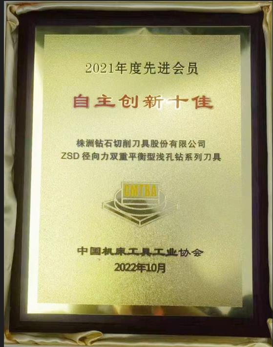 2023年4月10日,公司憑借“ZSD徑向力雙重平衡型淺孔鉆”系列刀具,榮獲機(jī)床工具行業(yè)2021年度自主創(chuàng)新十佳獎。