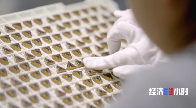 在硬質(zhì)合金國家重點實驗室里,每秒9600幀的超高速攝像機鏡頭記錄下機床硬質(zhì)合金刀片高速飛舞、削鐵如泥的畫面,金屬切屑猶如雪花般片片飛舞。