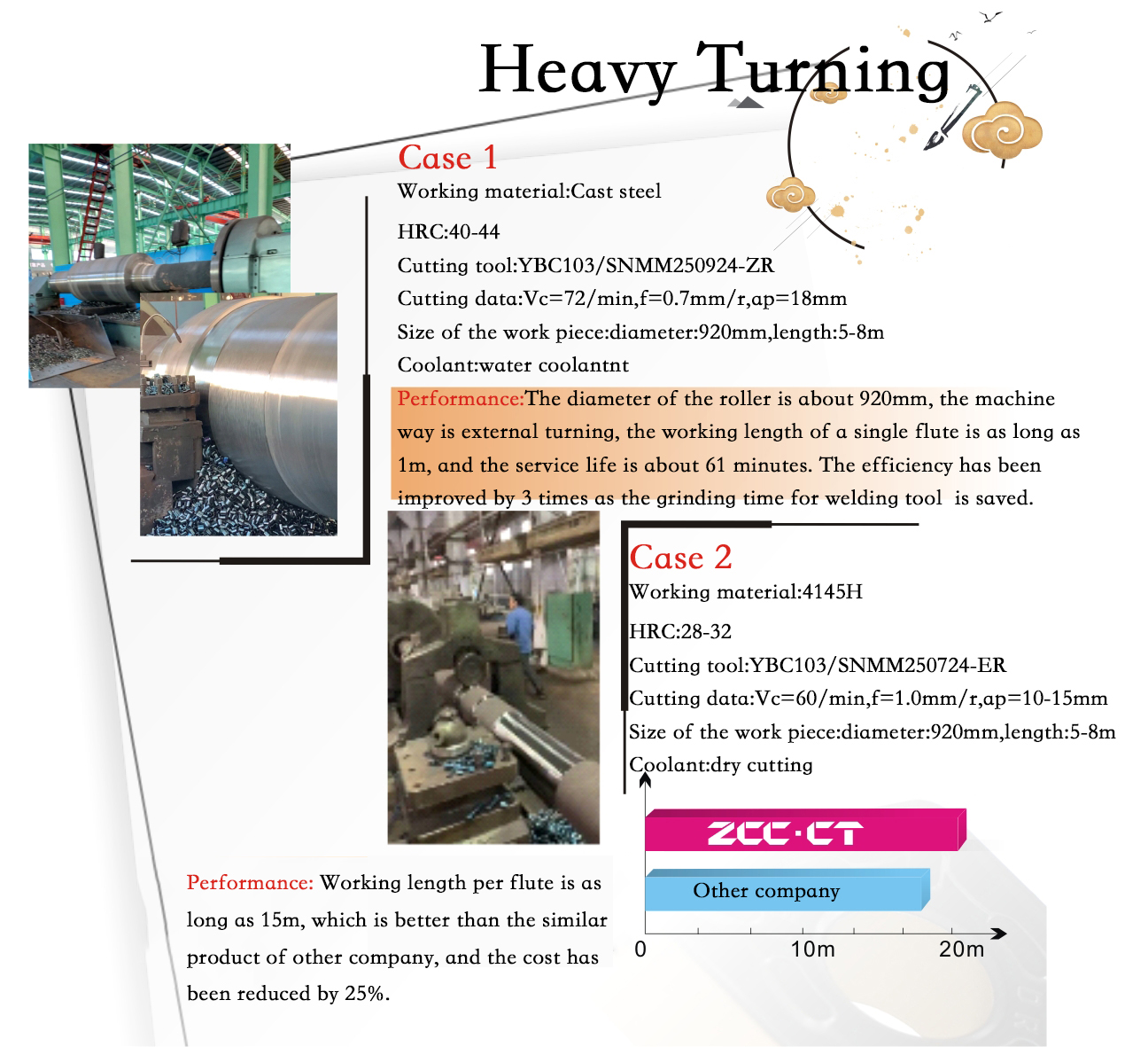 Performance: Service life reach 80min per flute, the cost is reduced by 20%.